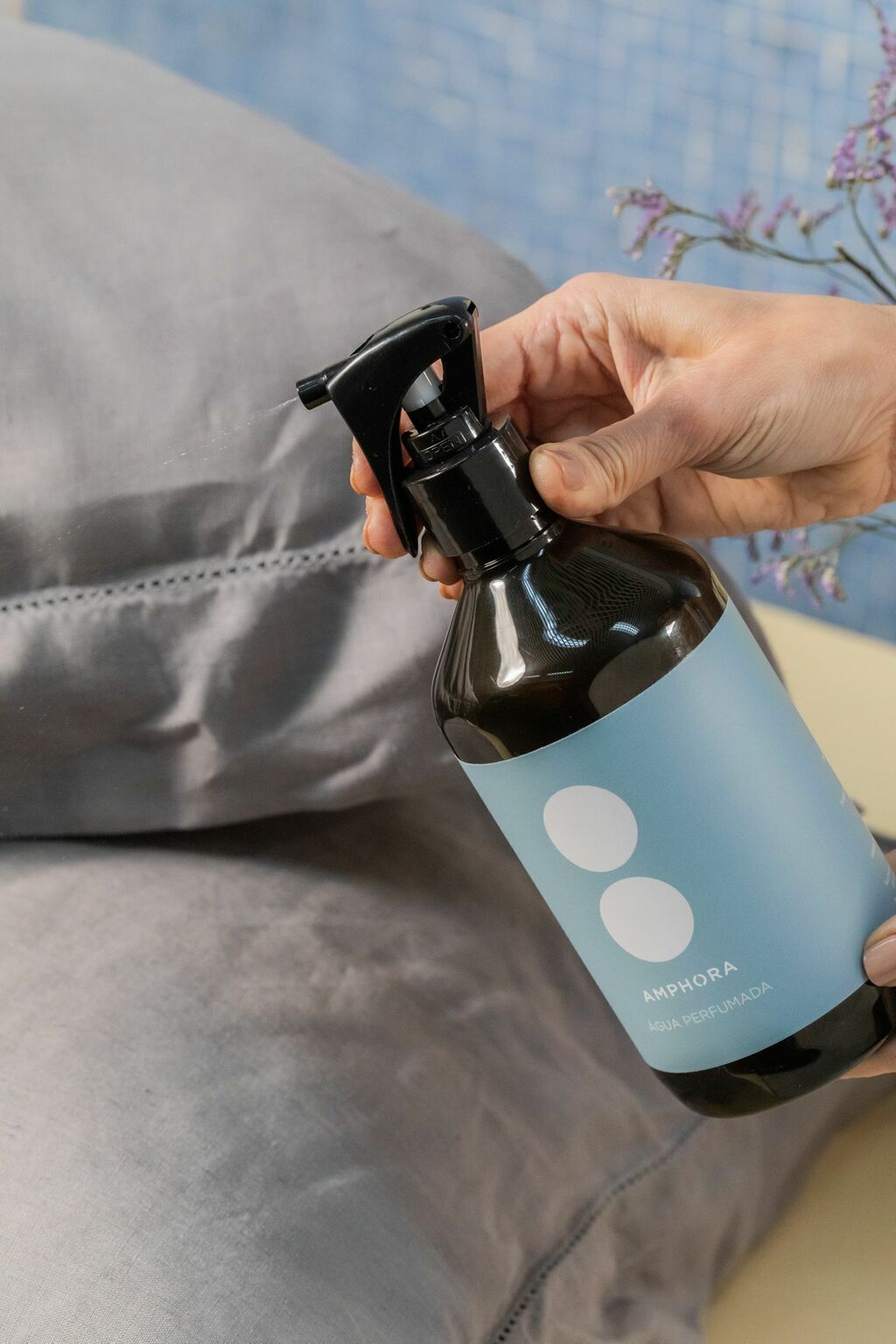 Água perfumada para roupas. Pode ser usado como um refrescante de lençóis.